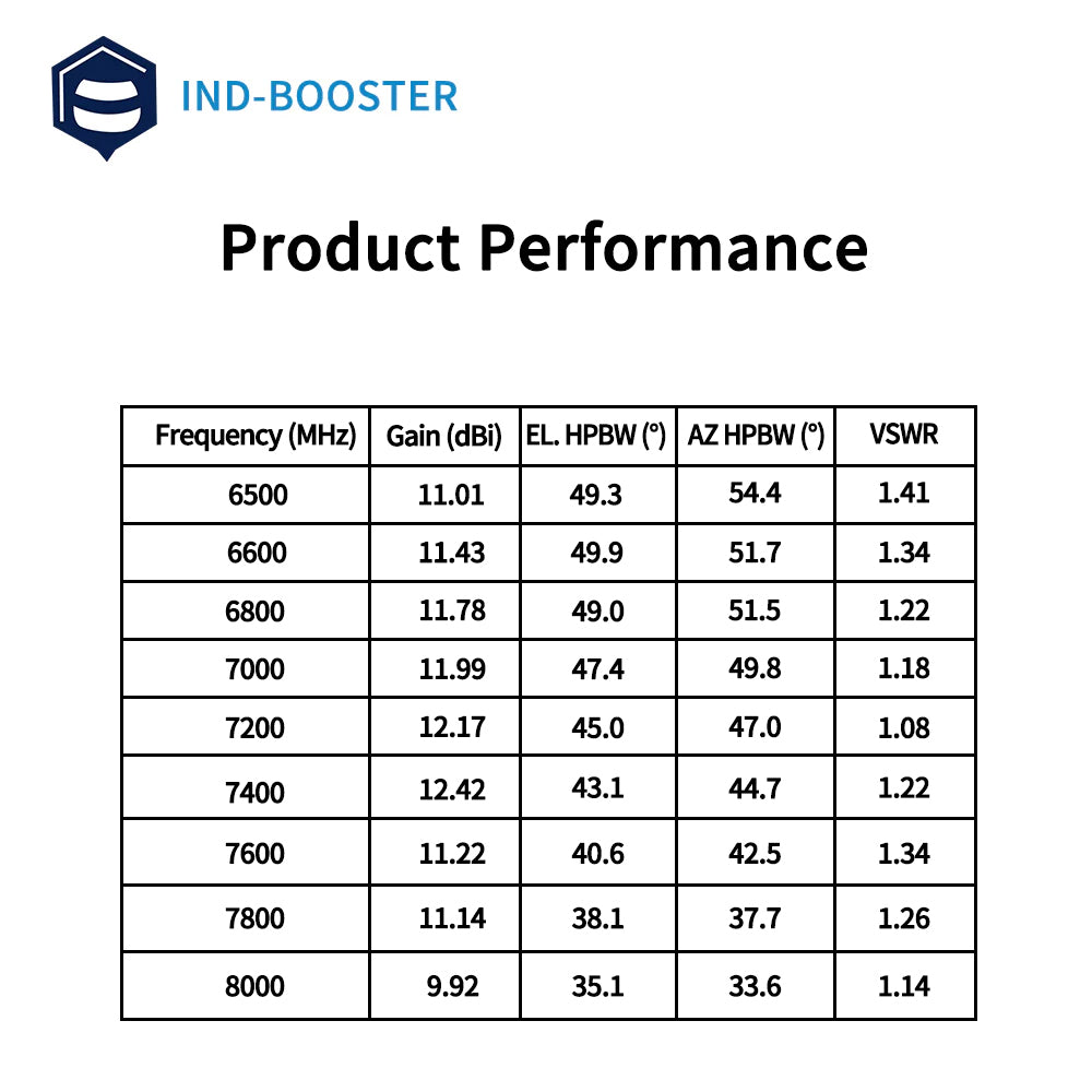 This high-gain directional antenna is made for the 6500-8000 MHz frequency range. It offers strong signal performance with a 12 dBi gain. The antenna is compact, making it easy to install even in small spaces.